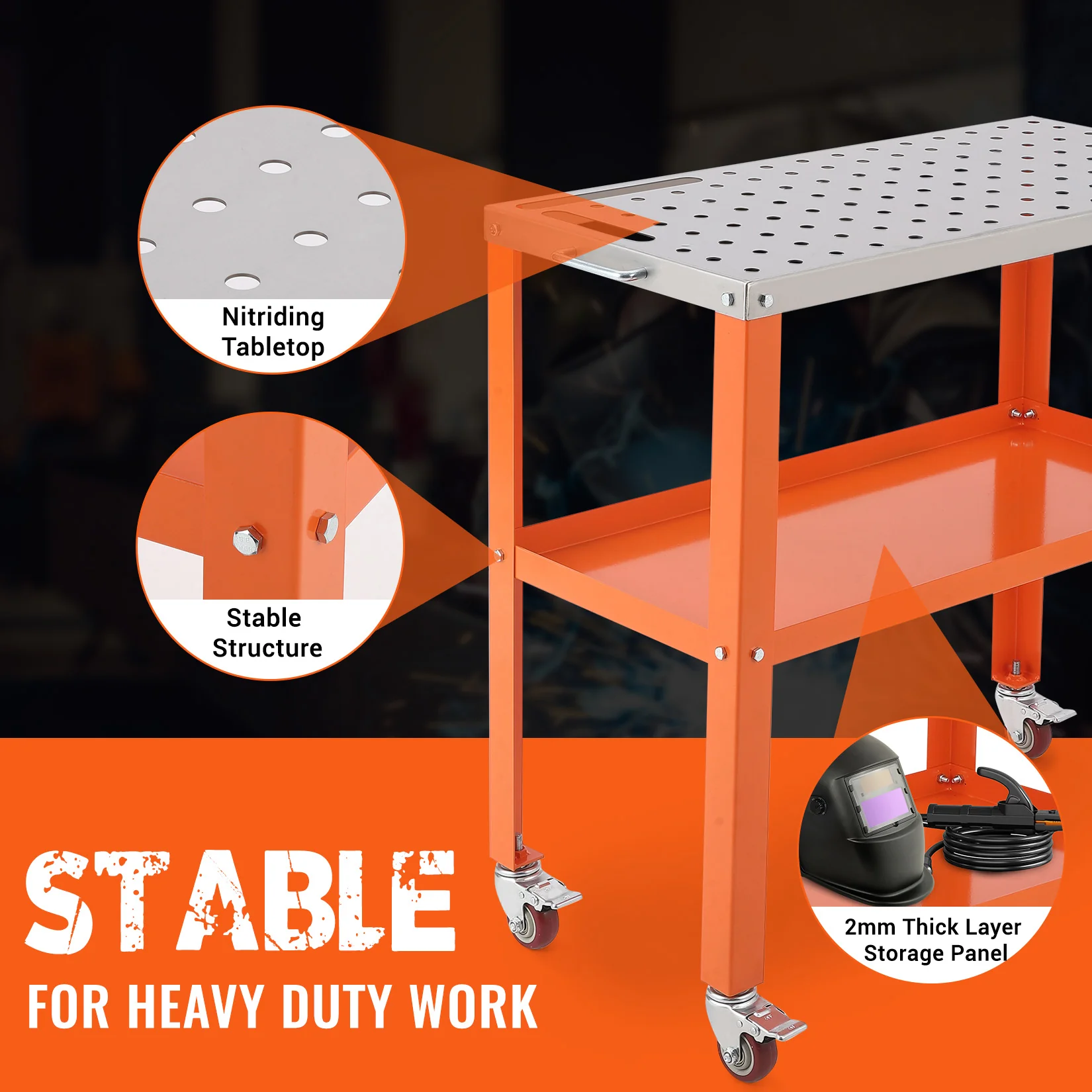Garvee 30''x20'' Welding Table - Portable Workbench with Folding Legs, Wheels, Adjustable Height, 30x20 Inch Surface, 350lbs Capacity for Garage, Shop, Home