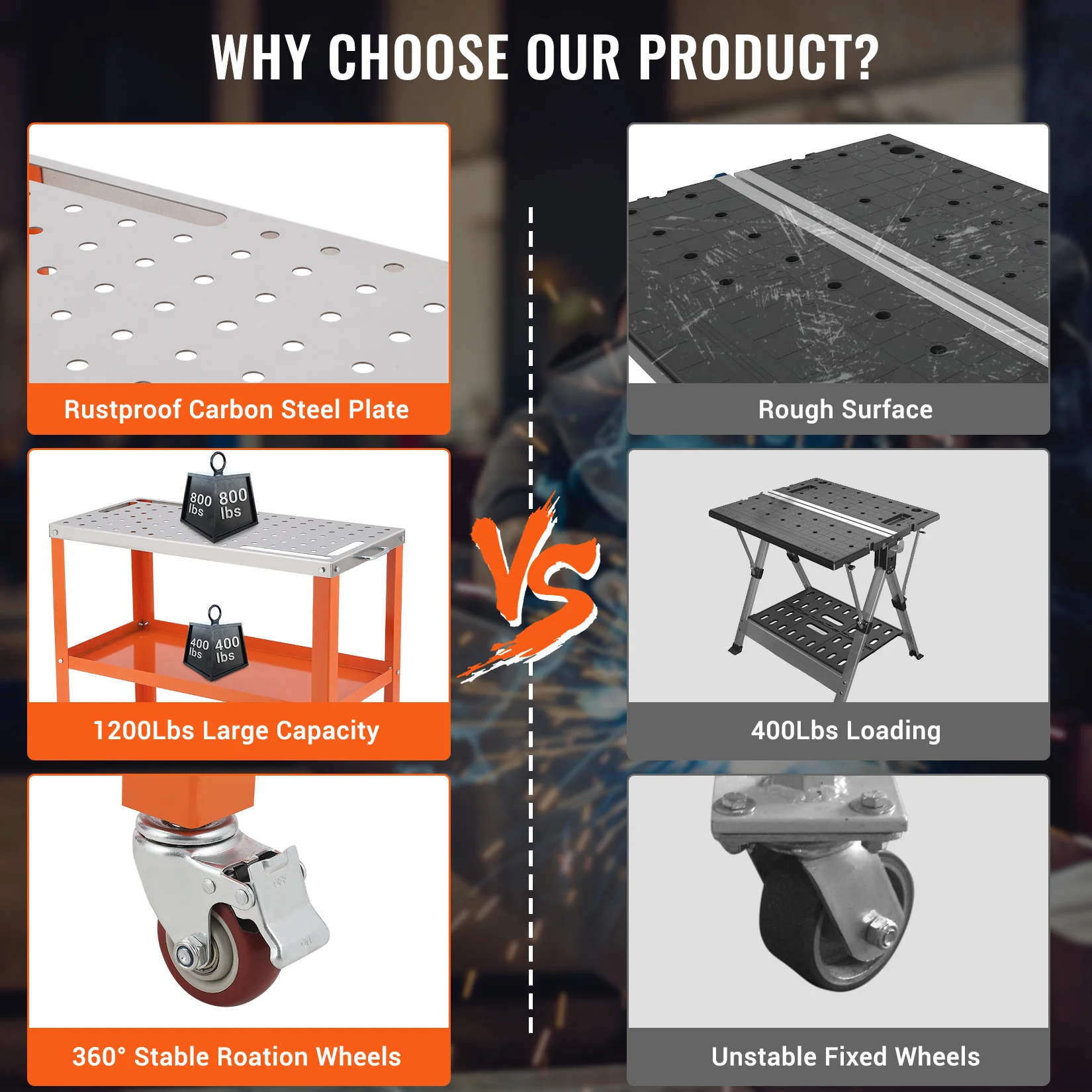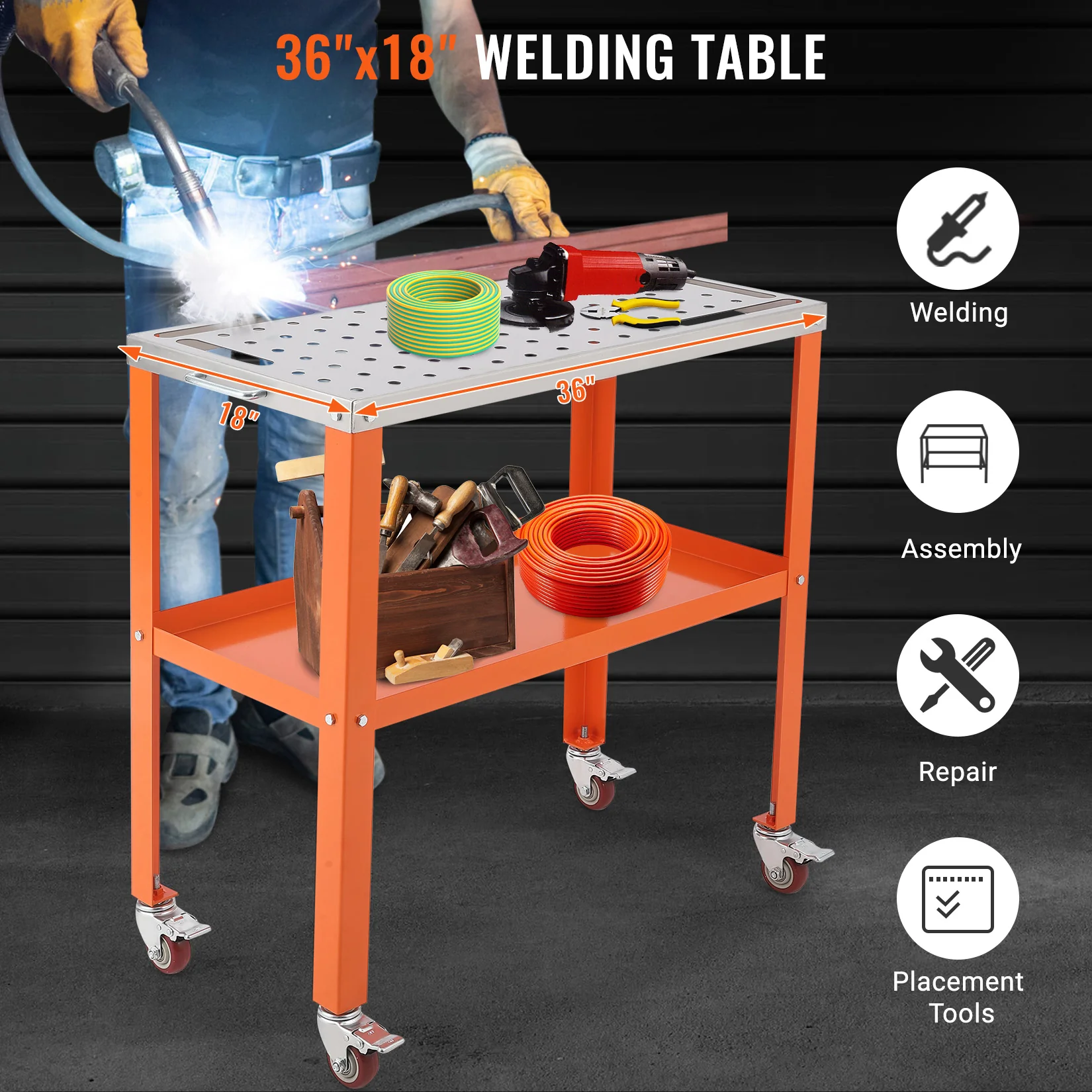 Garvee 36"x18" Welding Table, 1200lbs Load Capacity Heavy Duty SteeL Workbench with Wheels, Portable Welding Cart with 4 Tool Slots and Tool Tray for Garage, Shop
