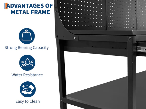 Garvee 48" x 22'' Workbench, Heavy Duty Steel Tool Storage Work Table with 2 Drawers and Shelf, Multifunctional Garage Work Bench with Pegboard for Home, Workshop, Basement