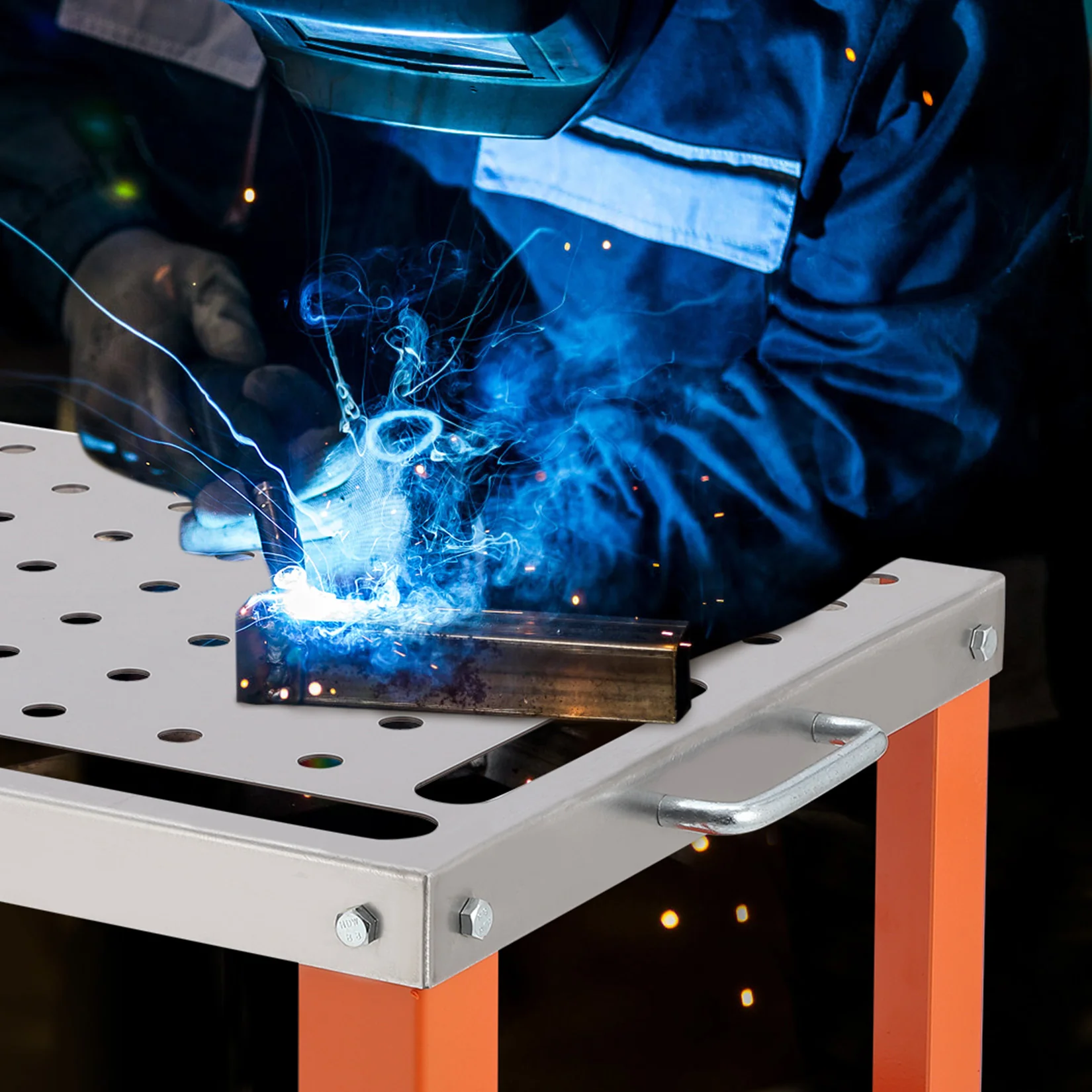 Garvee 44x21 Inch Welding Table, 500LBS Capacity Folding Welding Workbench with Wheels, Adjustable Height Fabrication Table, 3 Tilt Angles Portable Fixture Table for Garage, Shop, Home